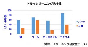 ドライ溶剤の洗浄力を比較すると、樹脂溶解力や比重が大きいパークのほうが石油系溶剤よりも汚れをより多く落とします。このため、着用頻度が高く、汚れが多いスーツや学生服はパークでのドライクリーニングが適しています。