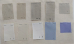 さらに、ドライクリーニングの優れた洗浄性を維持管理するため、「人工汚染布」を用いた洗浄試験を実施します。人工汚染布とは、ウールやポリエステルなどの白布に固形汚れや水溶性汚れを付着させた試験布です。洗浄前後の光の反射率を測定し、その差を比較することで、洗浄力を数値として評価します。