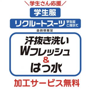 | 学生服のWフレッシュ・はっ水加工が大好評 |